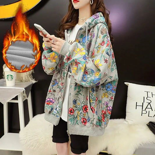 Lady Glams Casual Flower Print Hoodie: Blossom in Style