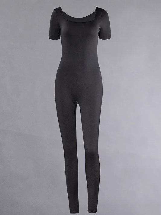 Cutenew Solid Black Sexy Backless Bodycon Wide Leg Jumpsuit: A Streetwear Statement