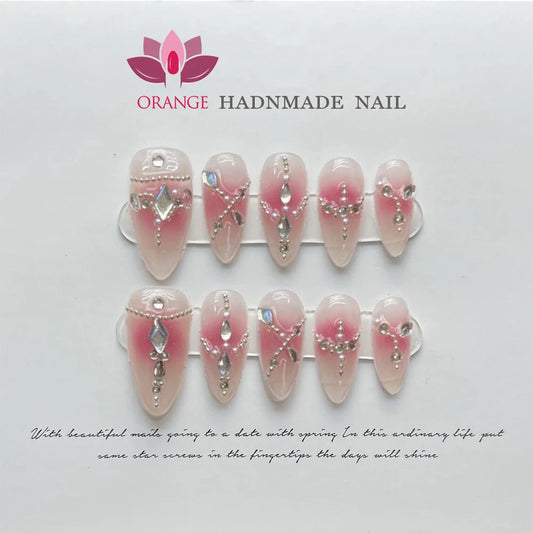 Handmade Pressed On Beauty Nails Design Decoration Fake Nails Glitter Full Cover Artificial Manicure Wearable | Orange Nail Store | Lady Glams