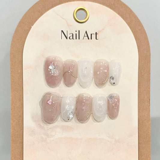 10Pcs Pink French Y2K Nail Tips Long Ballet Handmade Fake Nail Wearable False Nails with Rhinestone Press on Nails Manicure | Lady Glams