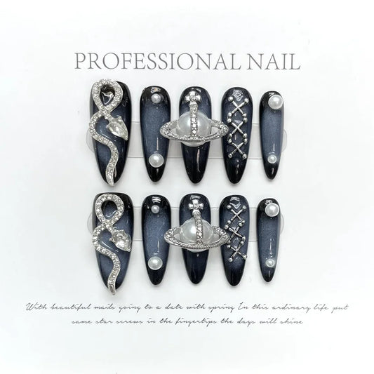 Handmade Luxury Press on Nails Long Stiletto Angle Eye Design | Reusable Adhesive False Nails | French Goth Nail Tips Manicure | Lady Glams