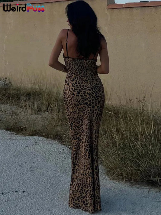 Weird Puss Leopard Print Spaghetti Strap Dress - Embrace the Wild Side of Summer