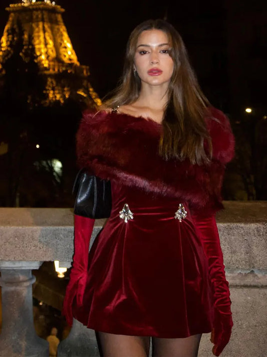 Lady Glams Elegant Faux Fur Red Strapless Mini Dress - A Stunning Holiday Ensemble