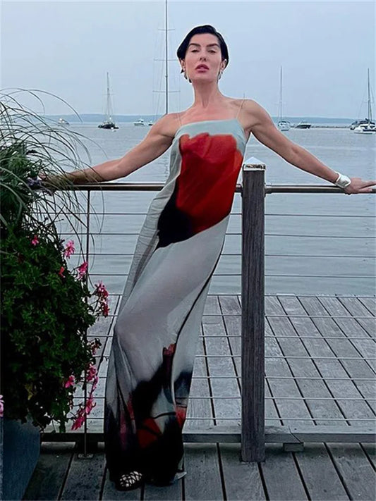 Fantoye Sexy Mesh Print Sheer High Slit Women's Dress - Transparent Slim Strapless Female Dress Party Street Vestidos