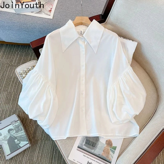 JoinYouth Vintage Chiffon Loose White Shirts - Embrace Effortless Summer Style with Short Sleeves