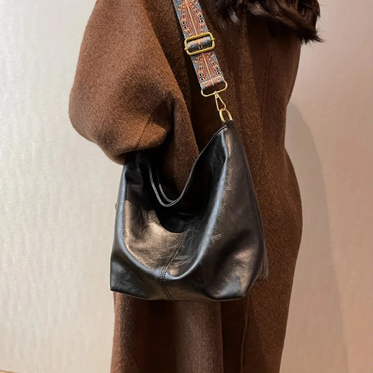 Lady Glams Retro Solid Color PU Large Capacity Shoulder Bag - Elevate Your Style with Timeless Elegance