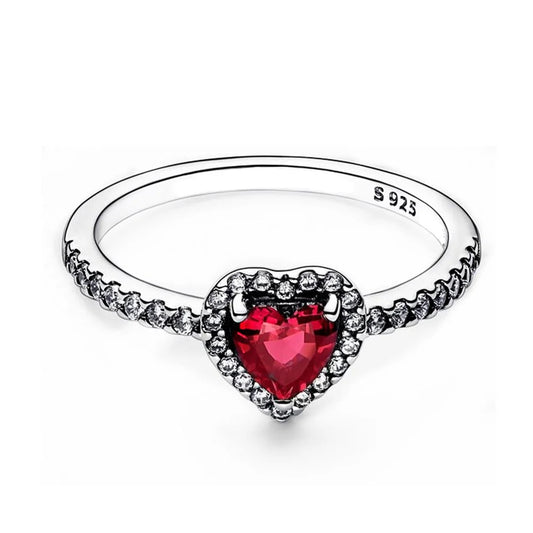 Lady Glams Elevated Roter Herzring - Silberfarben CZ Zirkonia Stern Mond Blume Hochzeitsschmuck Geschenk