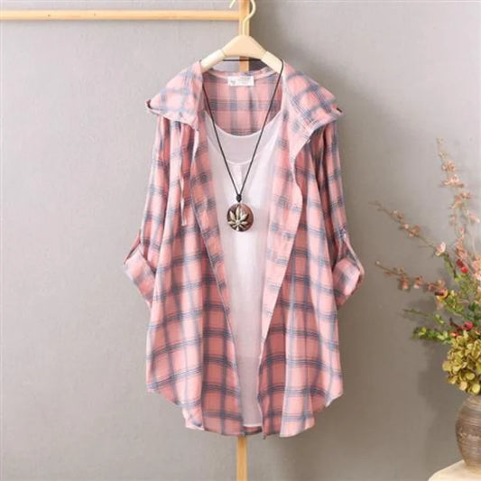 Bleiben Sie stilvoll und bequem mit dem lässigen gestreiften karierten Kapuzenoberteil